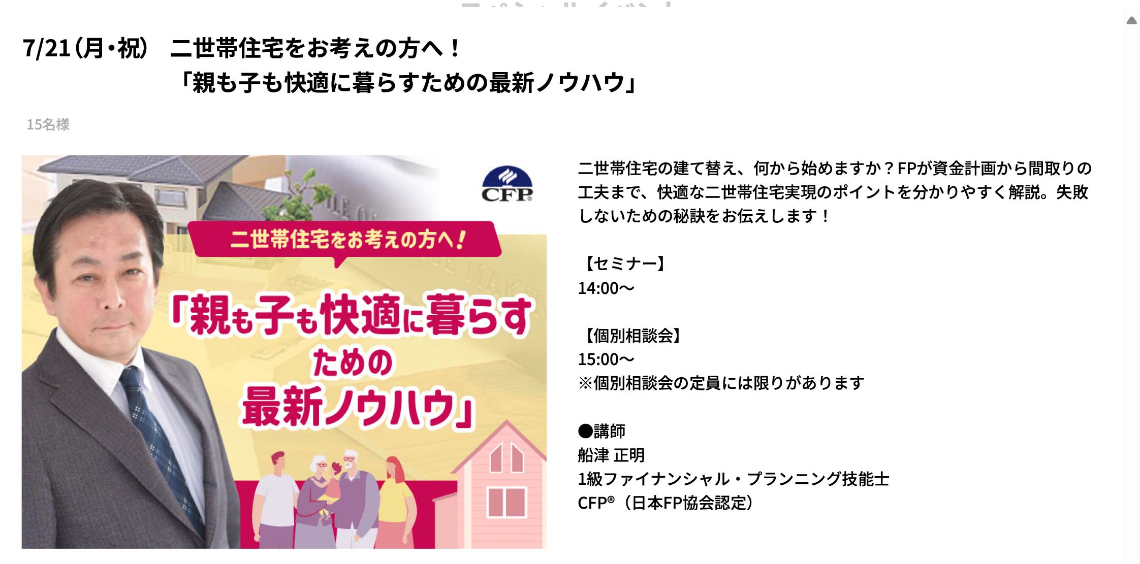 老後の資産を守って残すための、「ラクしてトクするお話」をさせていただきますので、皆さん、是非お越し下さい!講師は私、船津が務めさせていただきます!